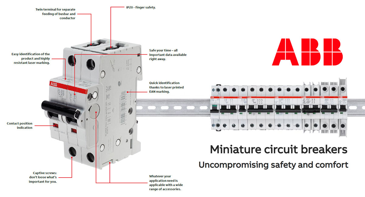 ABB Miniature circuit breakers ensure electrical safety in multiple applications.