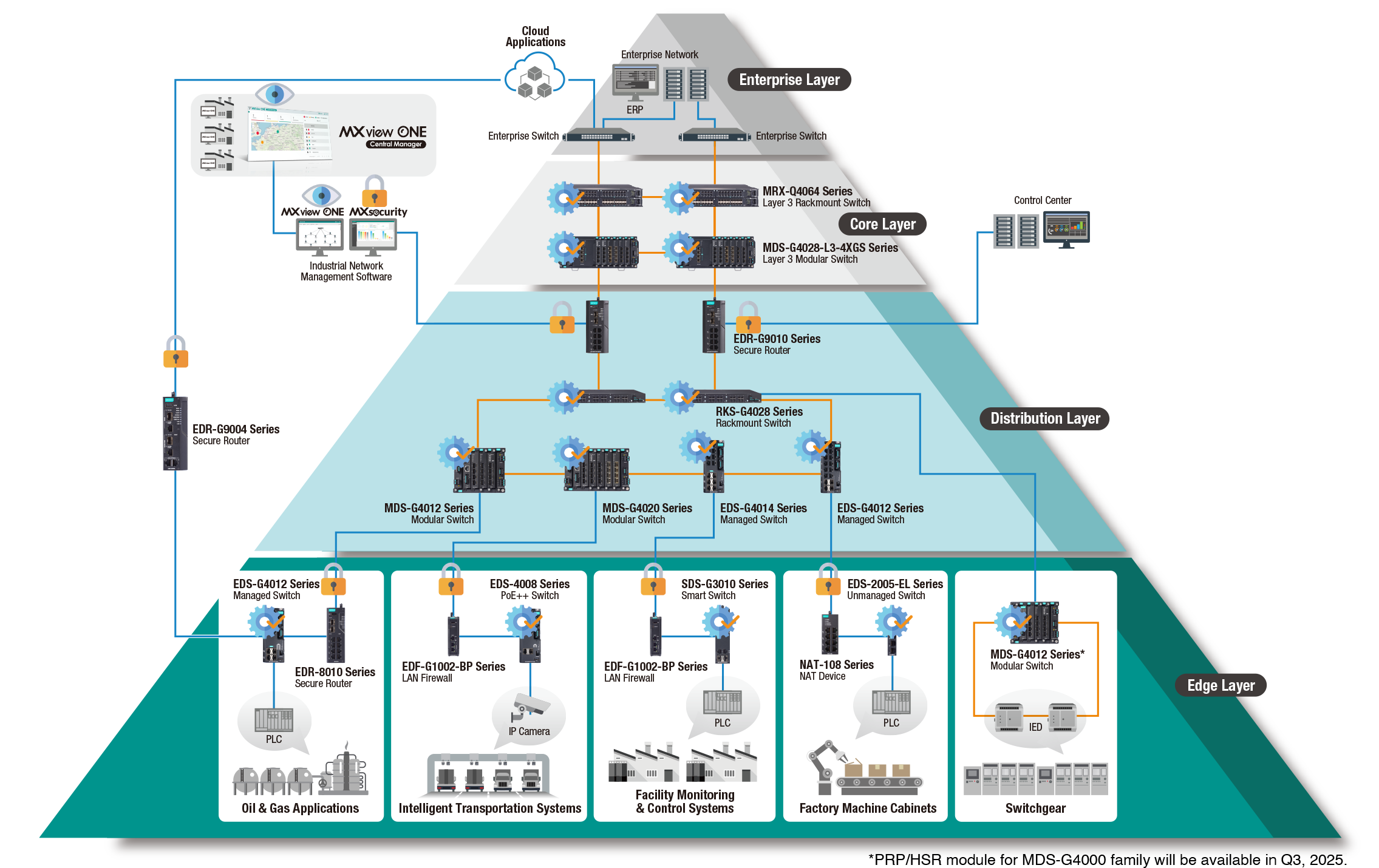 Moxa offers reliable edge-to-core networking solutions that meet the requirements of different network layers, support current and future data connectivity needs, and sustain continuous operations.