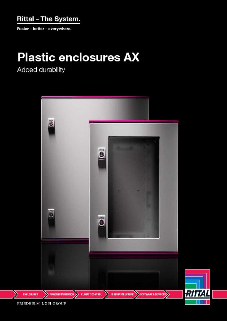 The new plastic enclosure AX stands for maximum simplifi cation, speed and confi guration freedom, while at the same time meeting the highest demands in terms of safety and robustness. Whether in the workshop or outdoors exposed to the elements – the plastic enclosure AX weathers all extremes.
